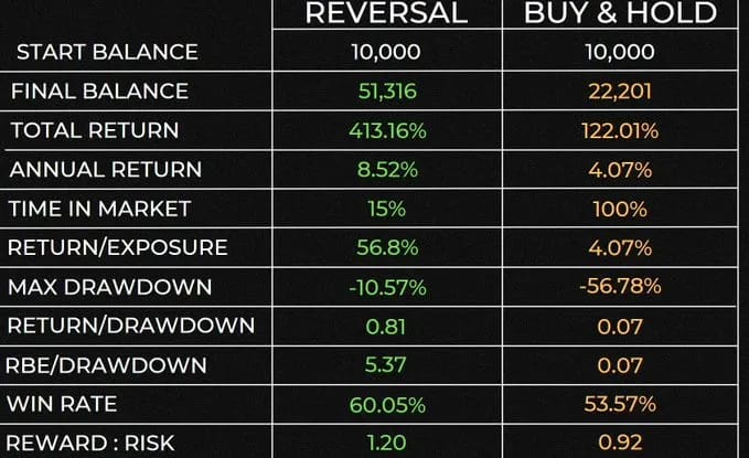 When testing on historic data, it is easy to introduce biases and fit the strategy to the data. These are some steps I took to limit this: I kept the strategy rules very simple and minimal, as always. I also limited my data set up until 2020. This left me with 4.5 years worth of out of sample data. I ran my backtest on this out of sample dataset and got very similar results continuing to outperform buy and hold when adjusted for the time in the market. I tested the strategy on other indices to get a broader range of markets. The results were similar. Some better, some worse, but the general performance held up.