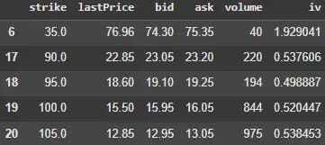 Figure 2. Filtered option chain data after removing illiquid contracts. It excludes options with low volume and wide bid-ask spreads.