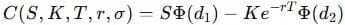 price = S * norm.cdf(d1) - K * np.exp(-r * T) * norm.cdf(d2)