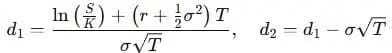 d1 = (np.log(S / K) + (r + 0.5 * sigma**2) * T) / (sigma * np.sqrt(T))