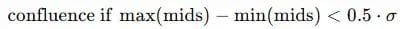threshold = 0.5 * stdev_mids # Confluence threshold