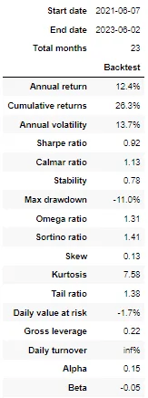 The strategy started with a portfolio value of $100,000 and ended with a final portfolio value of $126,312, yielding approximately a 26.3% return over the past two years.