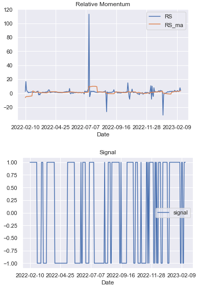relative_strength_rolling_mean = relative_strength.rolling(window=window).mean()# Create signal based on relative strength rolling mean