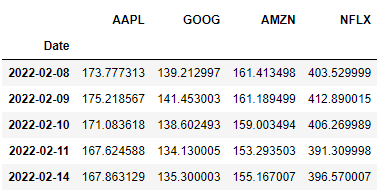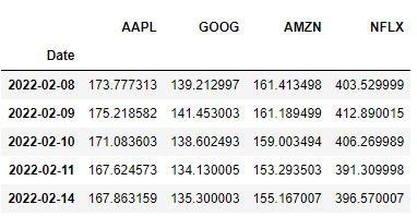 tickers=['AAPL','GOOG','AMZN','NFLX']