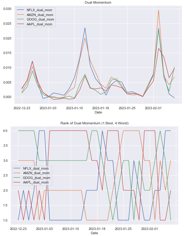 df_global: in which we have 4 stocks (‘NFLX’, ‘AMZN’, ‘GOOG’, ‘AAPL’) that make up our portfolio. The goal is to know which one has a strong dual momentum.