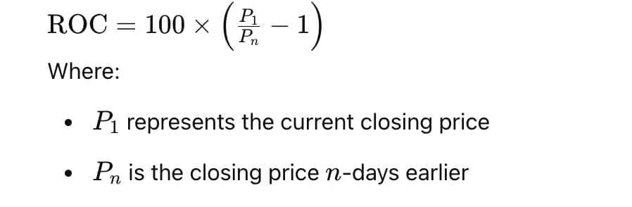 ROC Calculation: Compute the percentage change in price over 10 days.