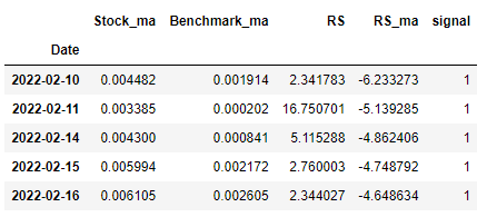 df_rel.columns=['Stock_ma','Benchmark_ma','RS','RS_ma']
